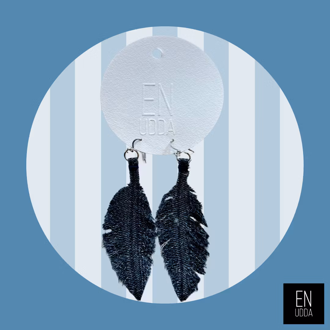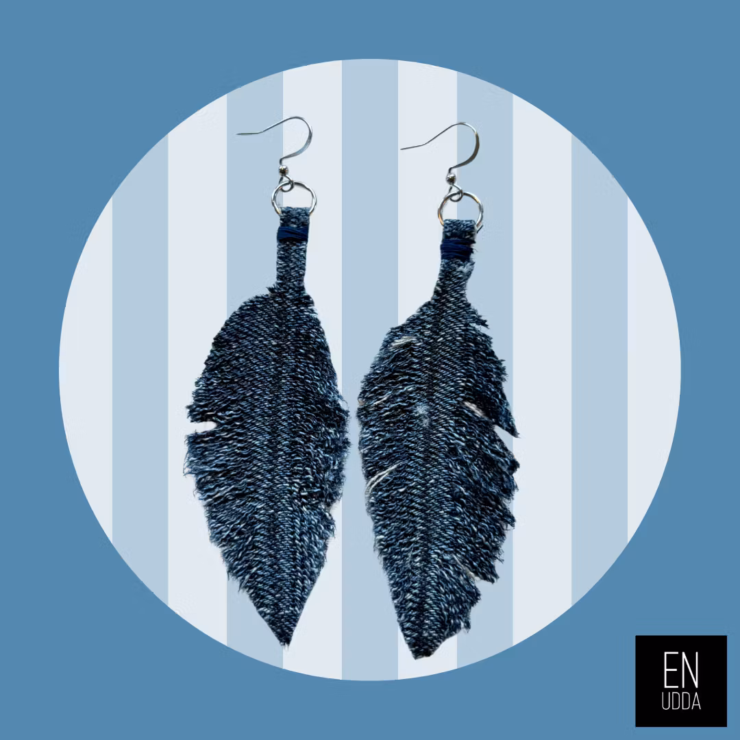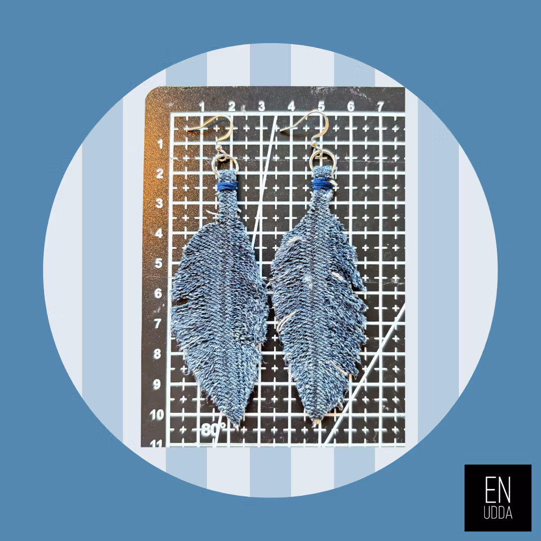 Handgjorda "Fjäder" örhängen av jeanstyg