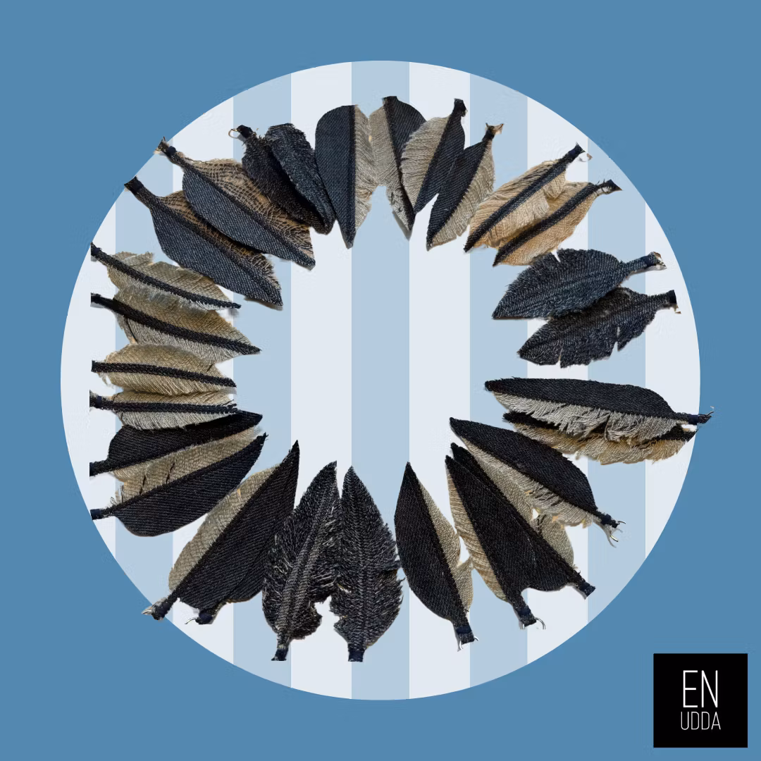 Handgjorda "Fjäder" örhängen av jeanstyg